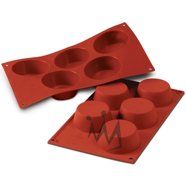 Silikomart Professional SF024 Silicone Baking Mold Muffin 4.56 Oz, 3.19" Diameter x 1.26" High, 5 Cavities (1 Each)