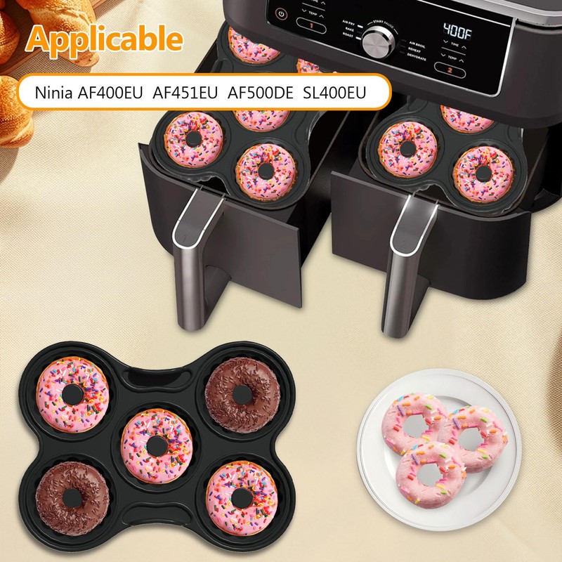 Silikon Donut Backform, 5 Raster, Schwarz, Wiederverwendbare, Antihaft-Pfanne, Kompatibel mit Ninja AF400EU, AF451EU, AF500DE und SL400EU (21 × 16 × 5 cm) (Einheitsgröße)