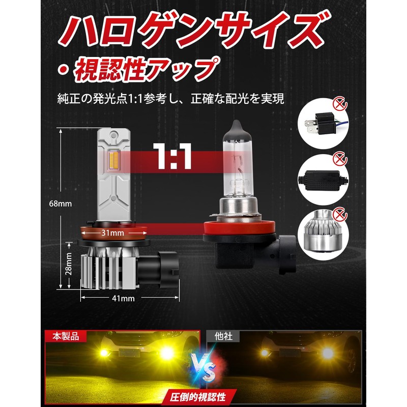 • 180° Adjustable Angle & 99% Compatible Car H8 LED Fog: This h11 led fog lamp can be rotated 180 degrees, so you can adjust the angle of mounting to suit your car's reflector. Easily switch between white and yellow to suit your preference. The angle of illumination can be adjusted finely, and the light distribution is optimized, so it won't disturb your oncoming vehicle. 360° light distribution, can be used for approximately 99% of the vehicle
