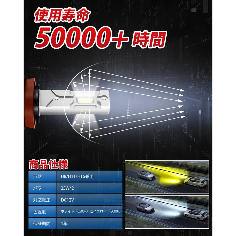 • 2025 Super Explosive H8 LED Fog Lamp: SILIVN H8 LED Fog Lamp, 2-color switching, uses high quality CSP1860 chip, and uses genuine luminescence point 1:1 for accurate light distribution and enhanced visibility than conventional products and halogen products. The high brightness 6,500K white makes it safer and safer to drive at night. The 3000k yellow is suitable for use in bad weather such as rain, snow and fog, and ensures a sufficient vision even in bad weather. It is very convenient to use as the white and yellow, and repeatedly turn the original switch on and off