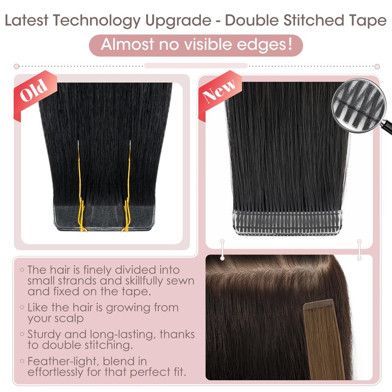 - MAXIMUM HOLD FOR GUARANTEED CONFIDENCE: Experience a firm hold with our double seam design for real human hair tape-ins that minimizes shedding and provides a damage-free experience compared to similar products. Highlight your style with this secure hold.