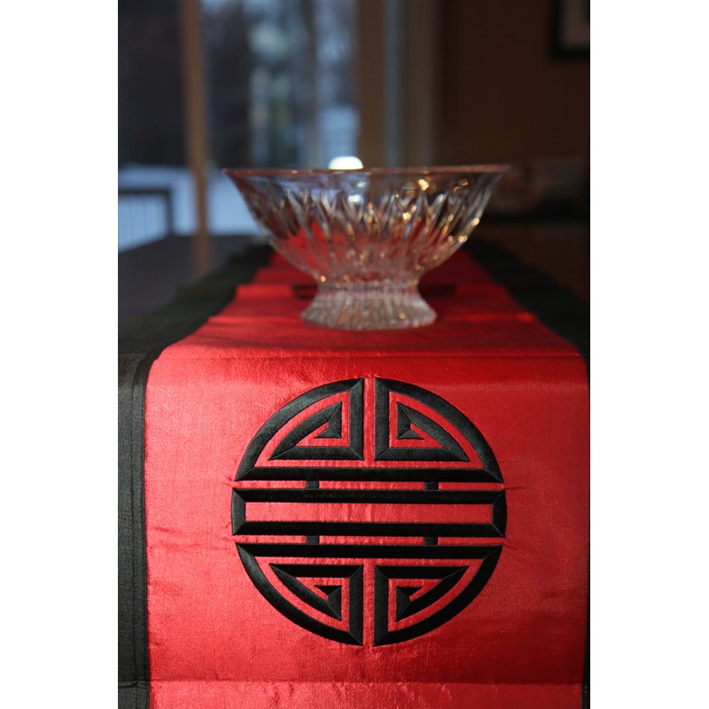 Silk Embroidered Table Runner -Happiness Red Silk- Made in Vietnam-STR1