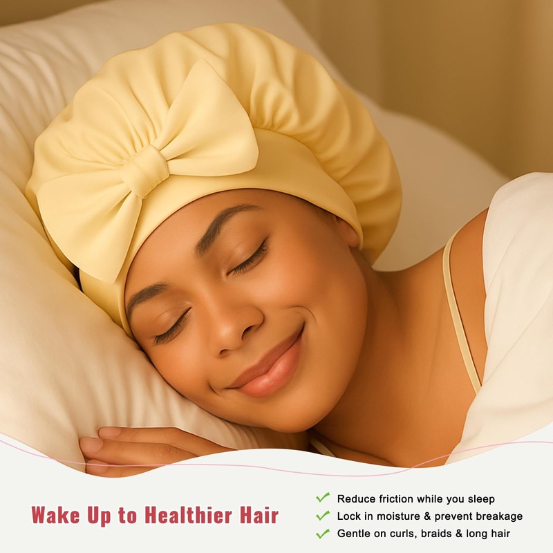 - Stay-On Fit: Long silk satin straps tie securely for a custom slip free fit; stays in place overnight; ideal for curly and natural hair