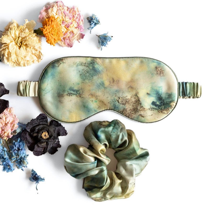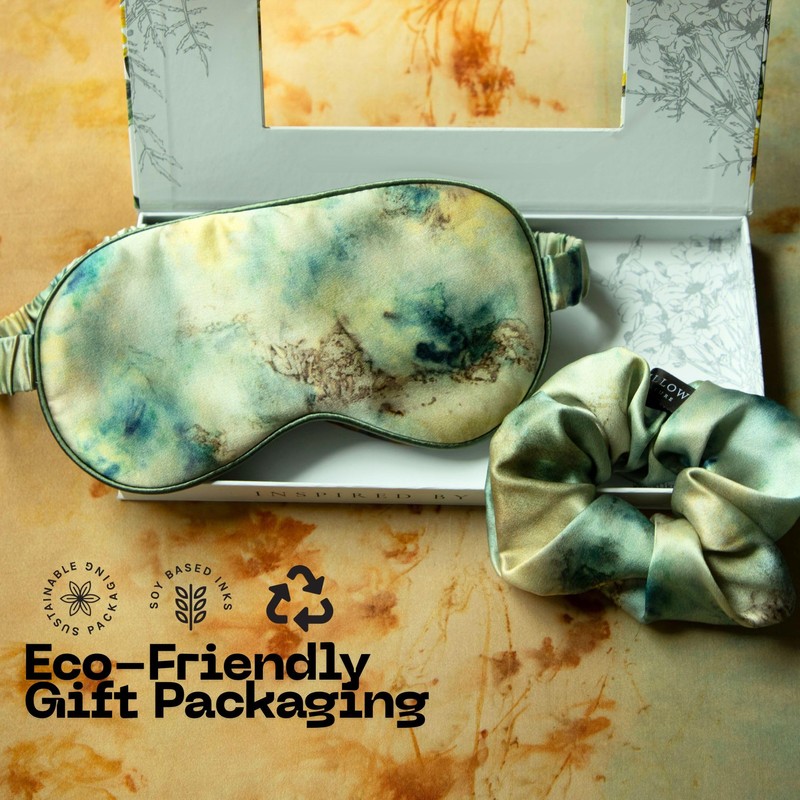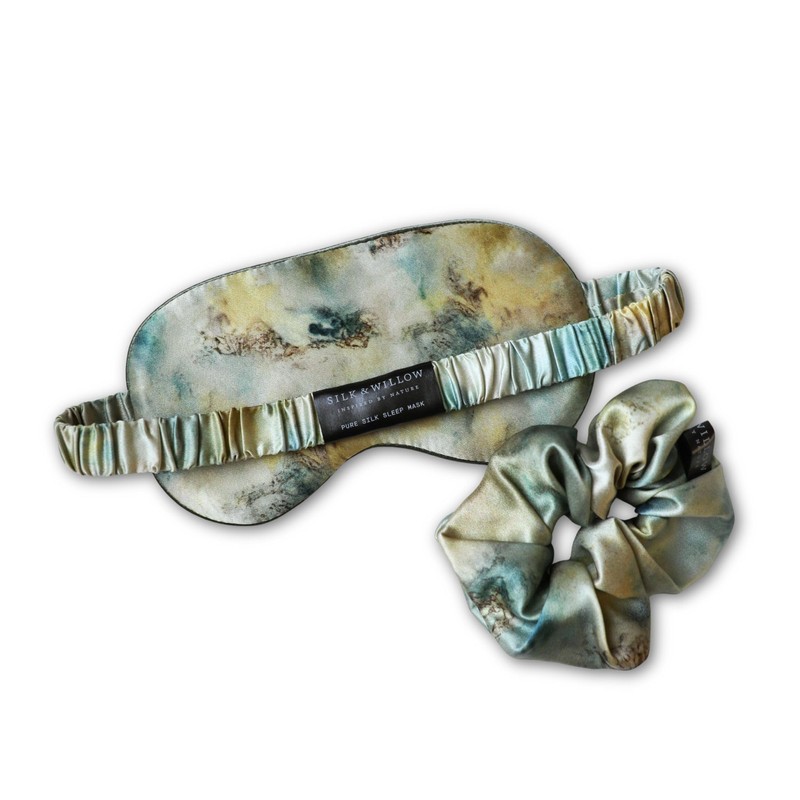 Silk & Willow 100% Pure Mulberry Silk Sleep Eye Mask & Hair Scrunchie Gift Set (Seascape)