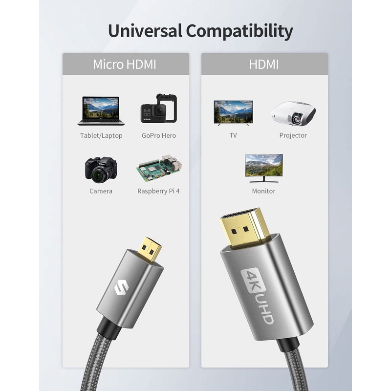 - Ultimate high definition 4K @ 60Hz: The Silkland Micro HDMI to HDMI cable supports Ethernet, 3D and Audio Return Channel (ARC) and delivers both high-definition video (up to 4K @ 60Hz) and uncompressed digital multi-channel audio. Not compatible with Samsung Odyssey G8 OLED