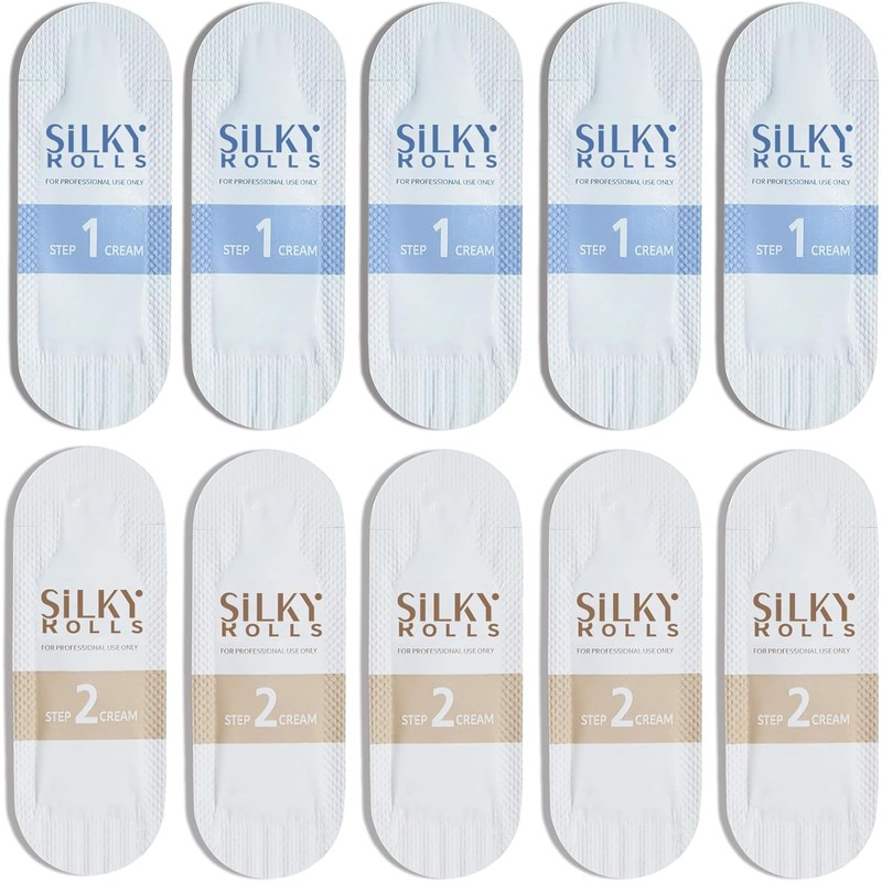 SILKY ROLLS,Eyelash Curling Cream Set - 5 Pouches, (STEP1/STEP2) Korean Skin Care