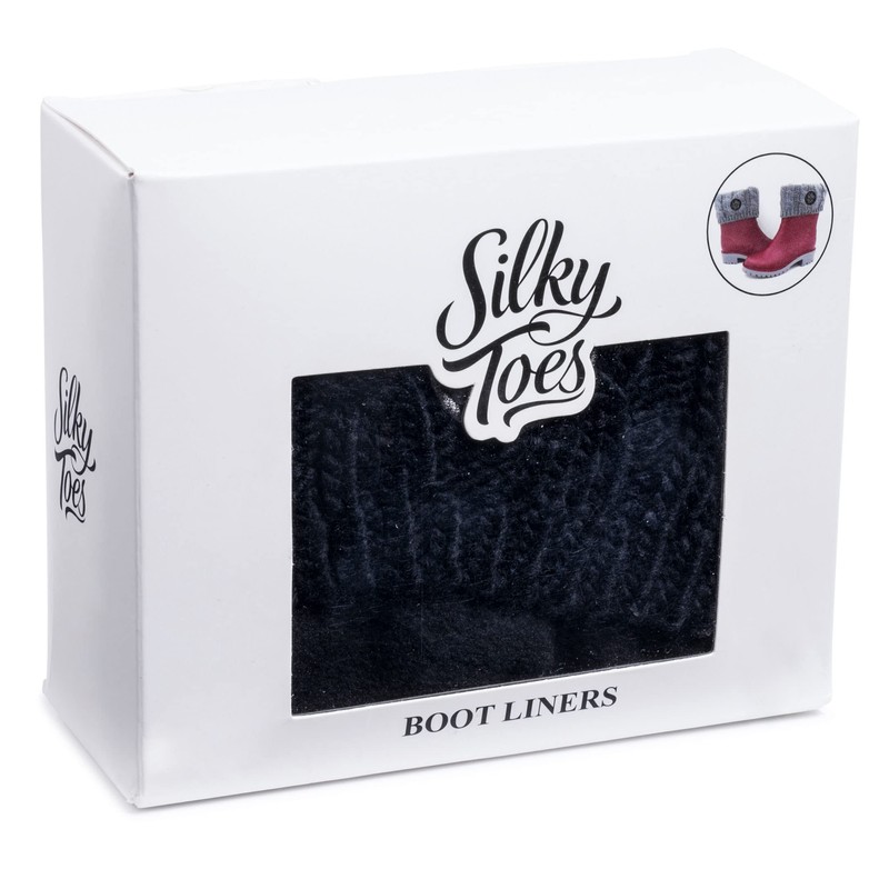 Silky Toes Kids Warm Cozy Fleece Lined Boot Liners With Cable Knit Cuff (Black, Small)