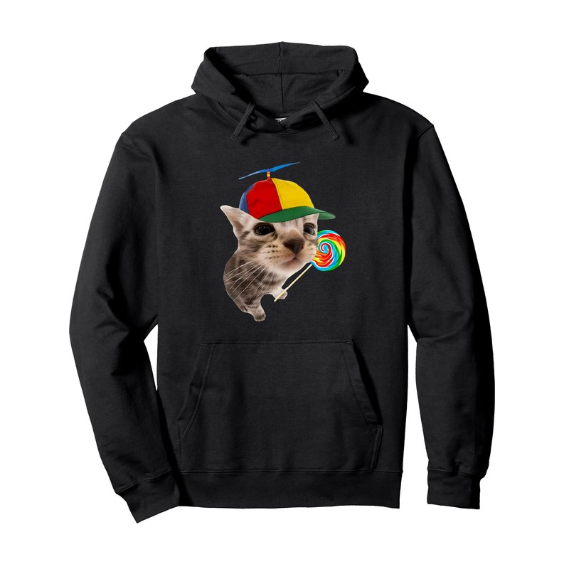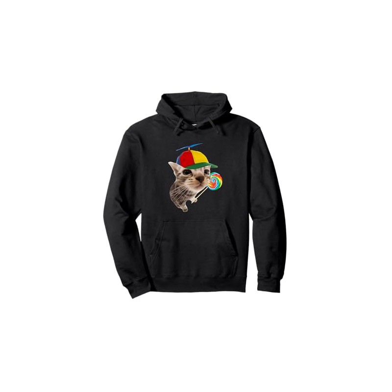 Silly Cat With Lollipop Meme Pullover Hoodie