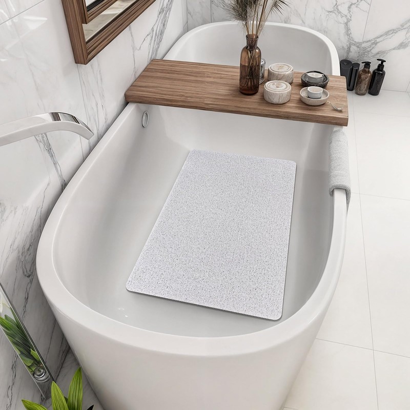 - Non-Slip & Gentle on Tubs: Siloloom PVC non skid shower mat without suction cups has a comfortable surface and plaid backing for a firm grip. This non slip bath mat reduces the risk of slips and ensures the safety of the elderly, kids, and protects your tub