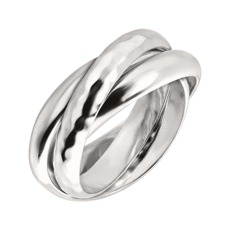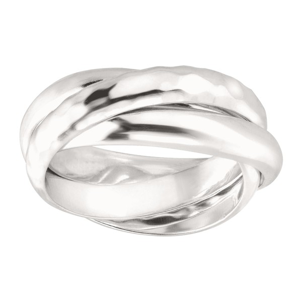 • The Showtime Ring features three bands of sterling silver intermixed and mingled with one another for a look that's both playful and elegant