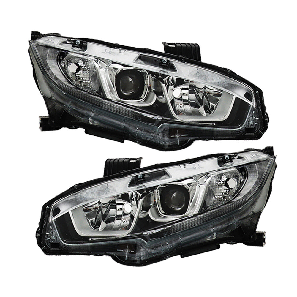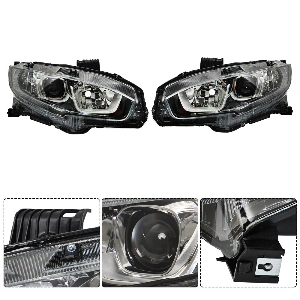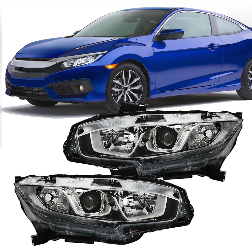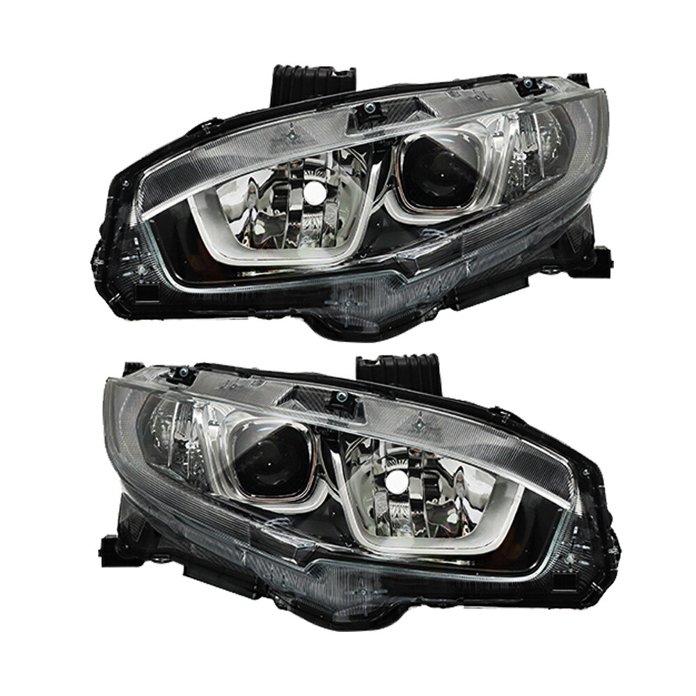 Replacement Pair Halogen W/LED DRL Headlight For 16-20 Honda Civic Electroplated