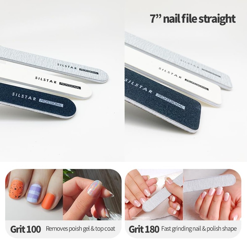 - SILSTAR PROFESSIONAL nail files come in a zip pouch that tells you what number grit nail file you need for what you're doing. You don't have to guess which emery boards and nail buffer you need for shaping, filling or buffing.