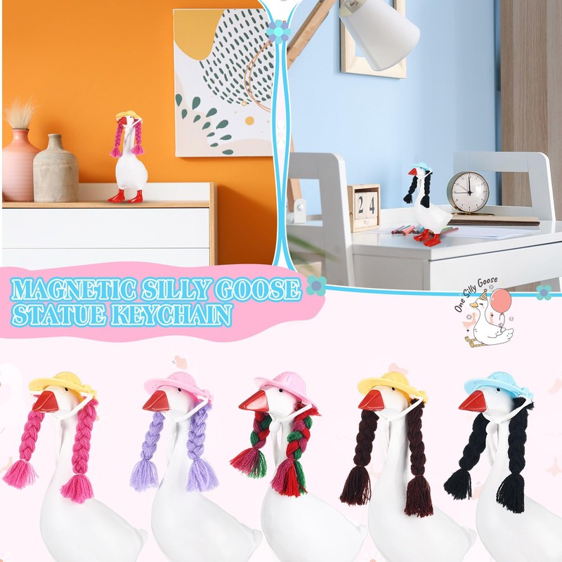 - Adjustable Size: the size of each 7 inch mini desk goose wigs with hats is slightly different; The diameter is about 2 x 2.3 inch, and the length of the adjustable rope is about 4.5 inch, suitable for magnetic goose statue desk key holder