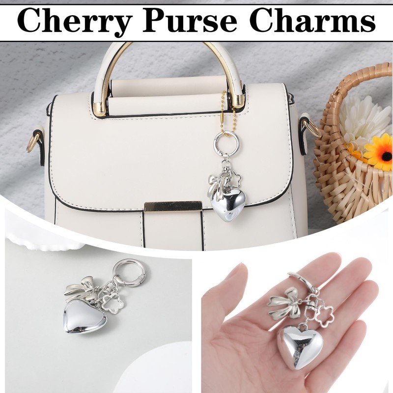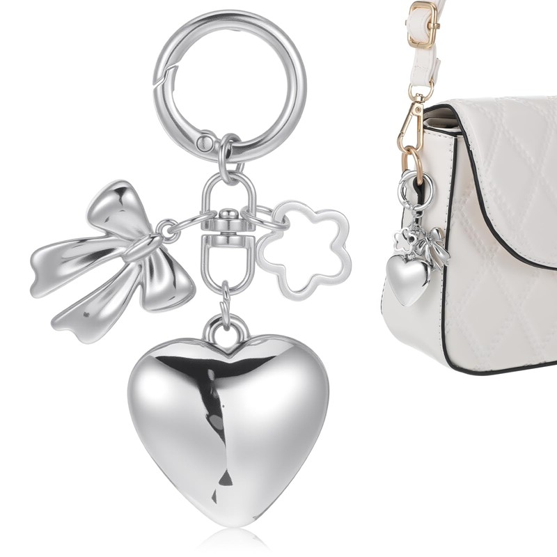 - Elegant Silver Bag Charms: Crafted with a heart, bow, and flower design, these silver bag charms add a touch of sophistication to any accessory