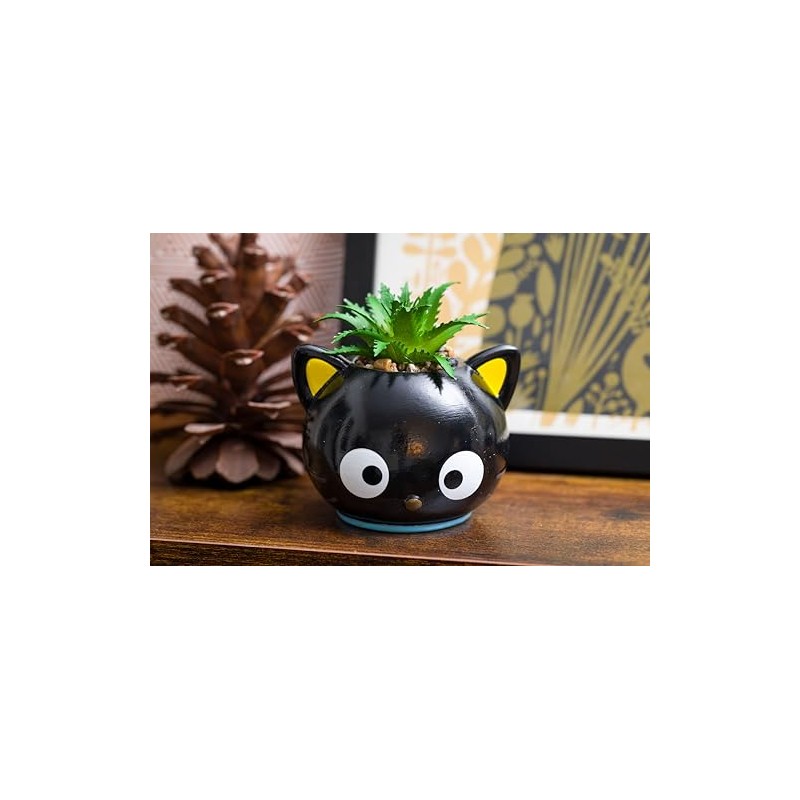 - ADORABLE DESIGN: Features Chococat's cute and iconic face, making this mini ceramic planter a charming addition to your home or office decor. Perfectly sized for small plants, succulents, or cacti.