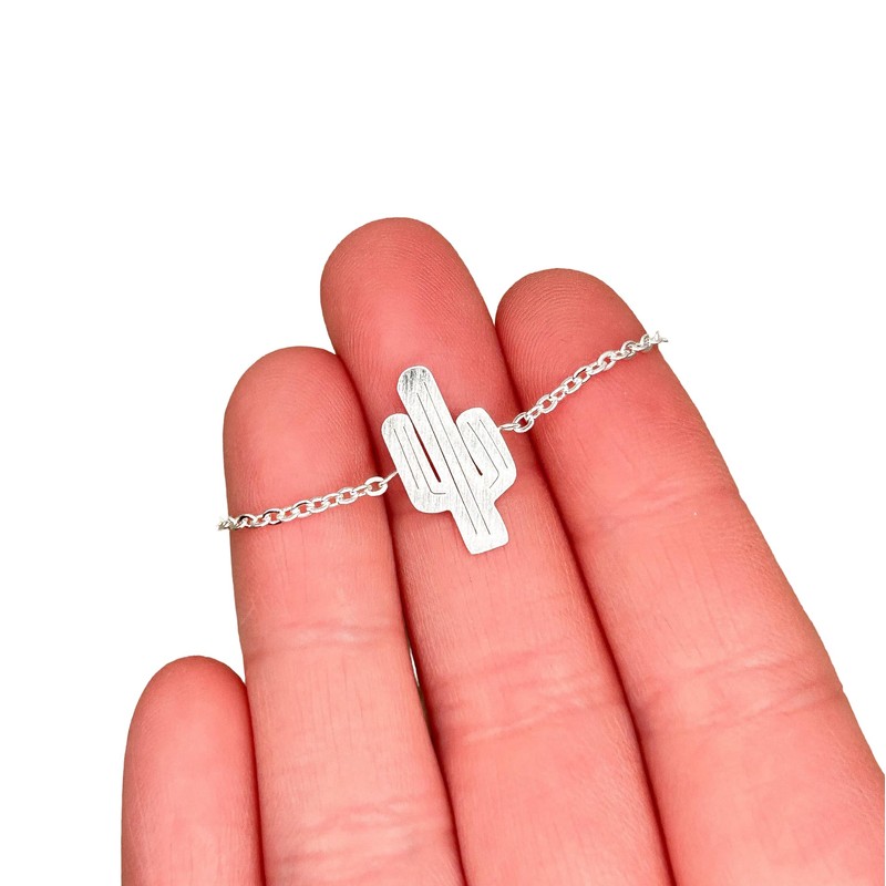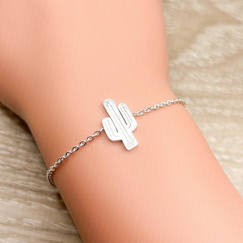 Silver Cactus Link Chain Bracelet (Stainless Steel) Miss Fit Boutique