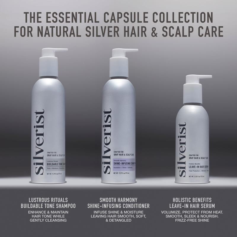 Silver Crown 3-Step System: Shampoo, Conditioner & Leave-In. Haircare Designed For Gray, Silver, White, and Blonde tones. Contains Hyaluronic Acid and Niacinamide.