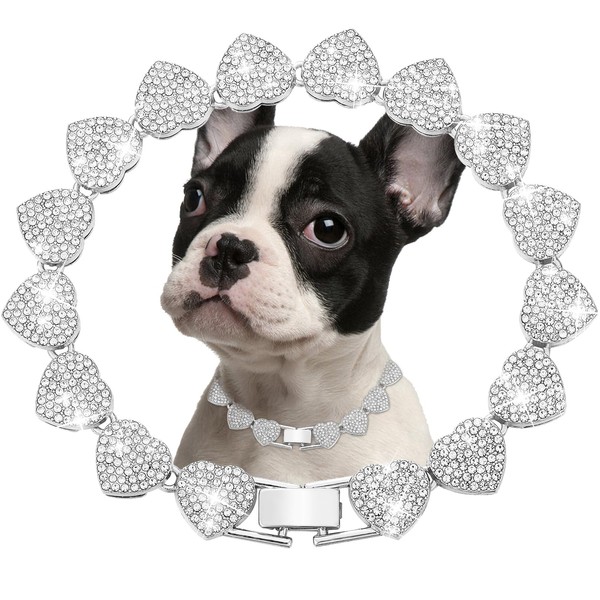 - Pets Necklace Material: Made of quality zinc alloy with zirconia Heart diamonds and polish surface which are stylish, sturdy.Dog Chain Collar Heart Necklace Diamond Cuban Link Dog Collar Cat Necklaces Metal Cat Chains Pet Crystal Collars Jewelry Accessories for small medium-sized Dogs Cats. "