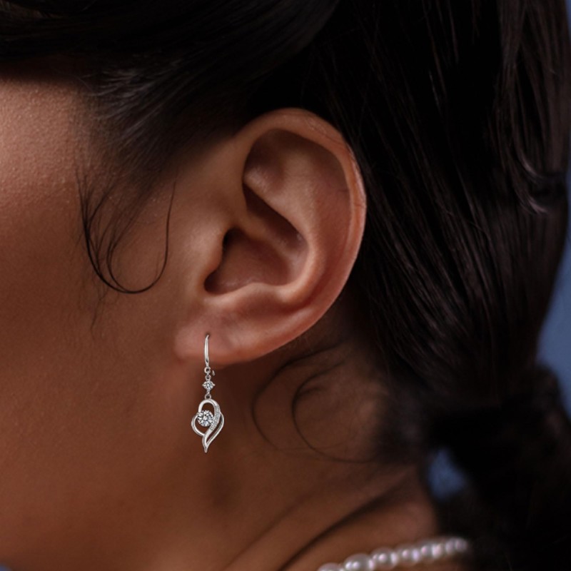 Silver Drop Earrings for Women, Sterling Silver Dangle Earrings with Cubic Zirconia | Silver Hanging Hypoallergenic Earring Jewellery for Girls Birthday Anniversary Christmas