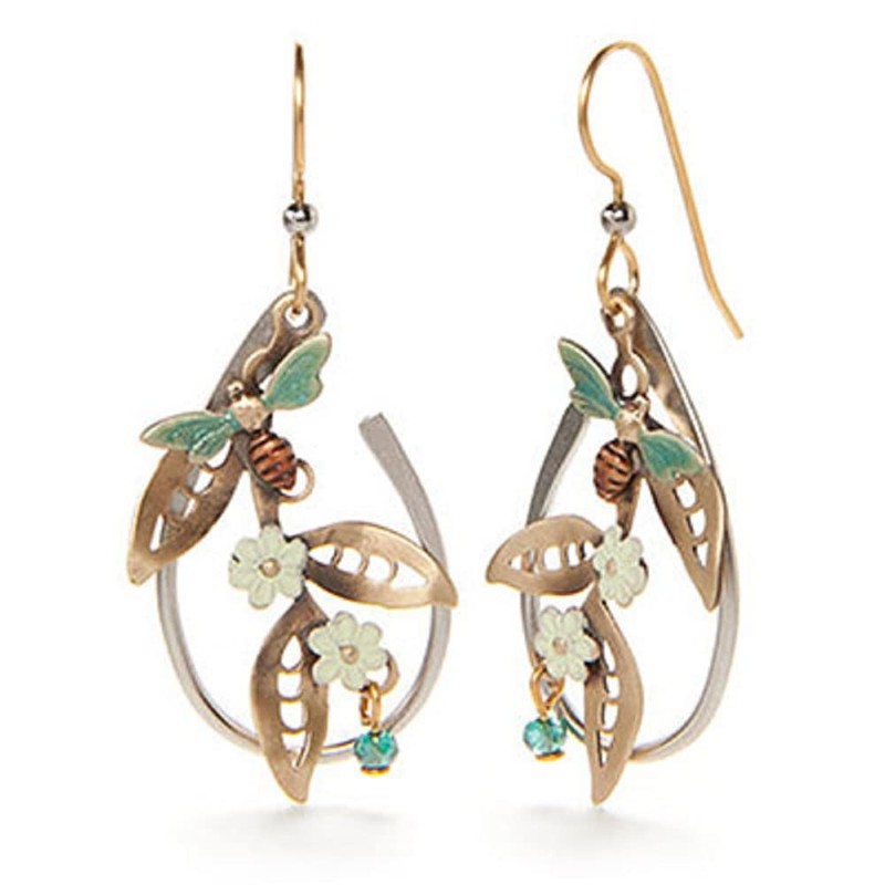 Silver Forest Bee Flower Loop Earrings