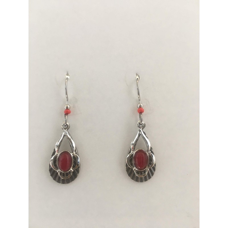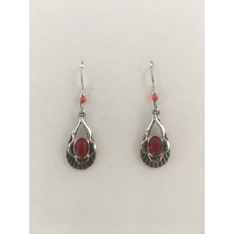 Silver Forest Ribbed Open tear with Red Stone Earrings. NE-1729