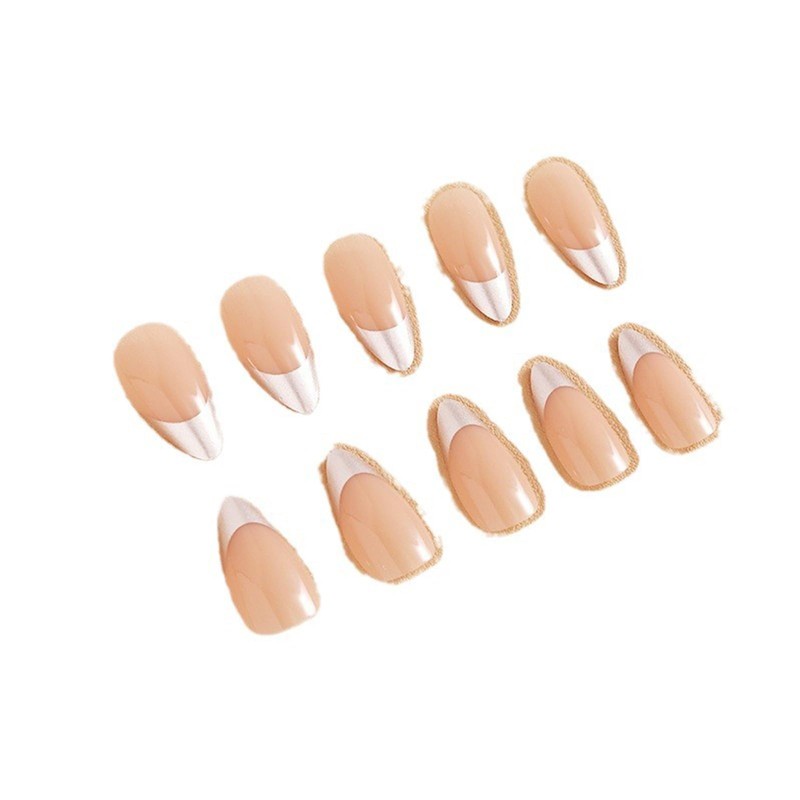 Silver French Tip Press on Nails Short Medium Almond Shape Fake Nails Glossy Full Cover Acrylic Nails Glue on Nails Artificial Stiletto Stick on Nails Cute Reusable False Nails for Women Girls 24Pcs