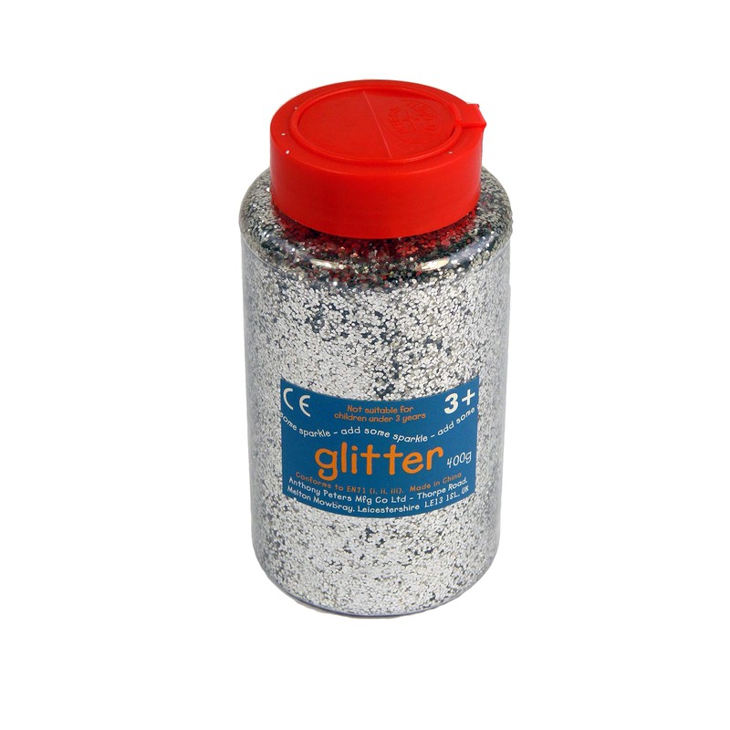 - 400g tub of silver art and craft glitter flakes