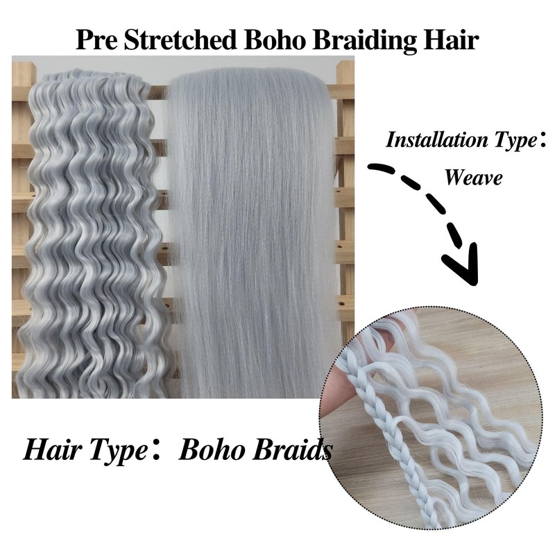 Silver Grey Boho Braiding Hair Curly Braiding Hair for Boho Braids Bohemian B...