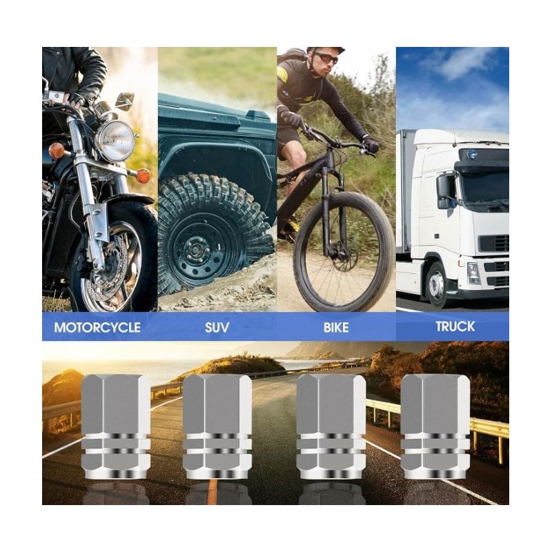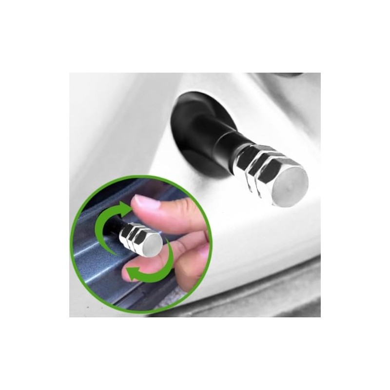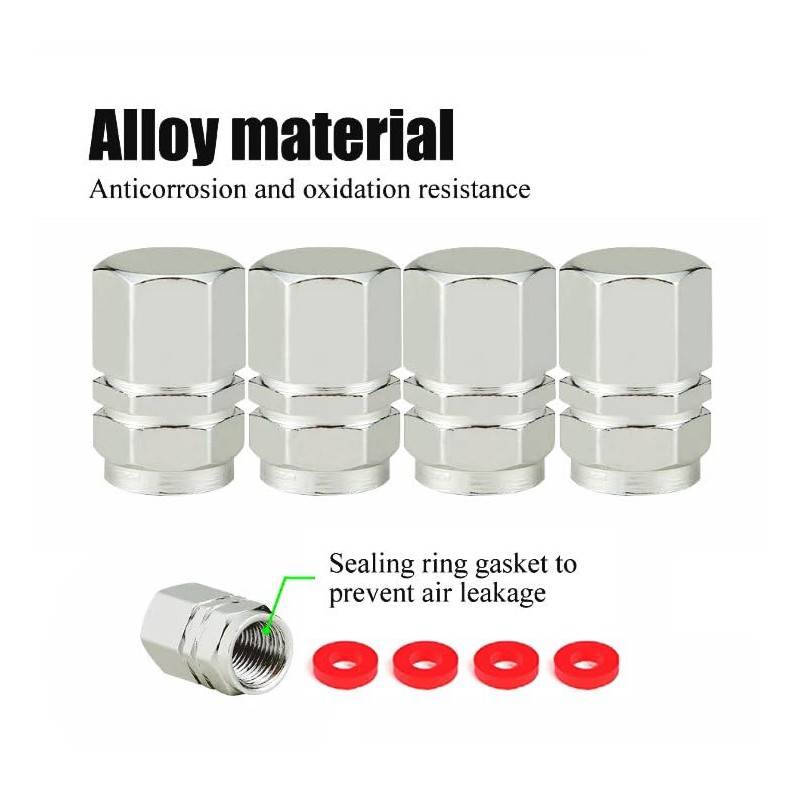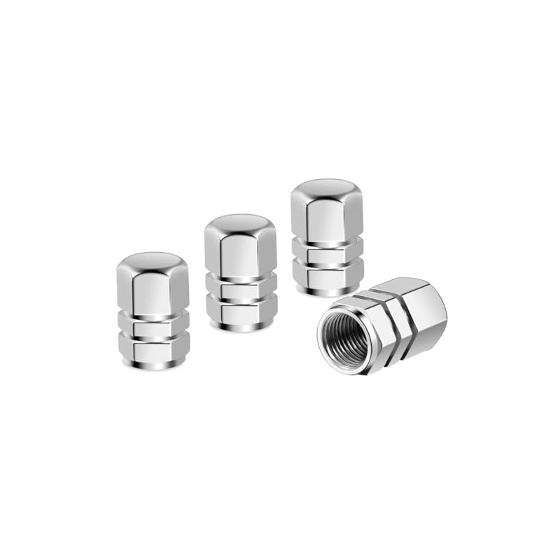 Silver Hex Aluminum Tire Valve Stem Caps - 4 Pack - Universal