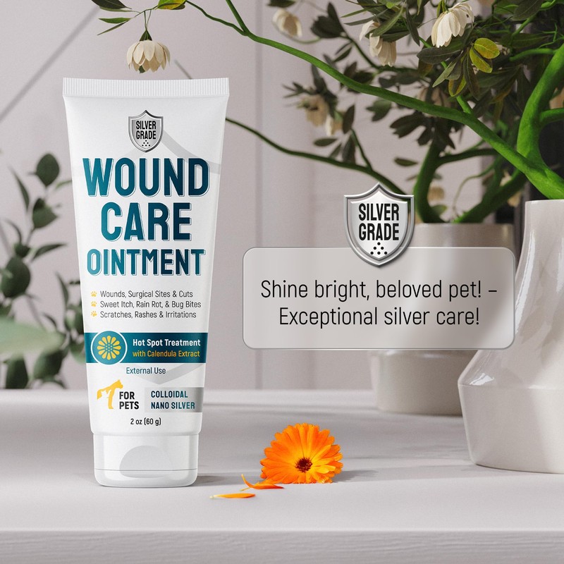 Silver Hot Spot Treatment for Dogs – Cat Wound Care Ointment for Rashes, Cuts, Scratches, Sweet Itch, Irritations – Use a Dog Cone or Cat Cones to Stop Licking – Calendula for Pets – 2 oz Tube