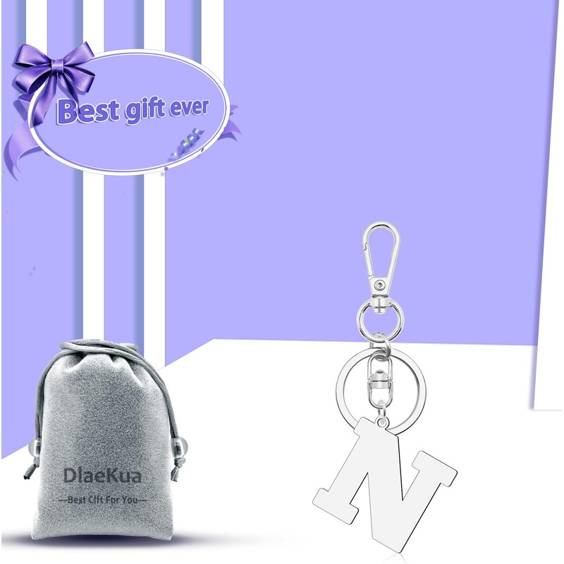Silver Letter N Keychain Monogram Gift for Women Men Initial A to Z Gifts Birthday Gifts for Sister Dad Brother Friendship Boyfriend Gift from Girlfriend Daughter Present from Mom Christmas Presents