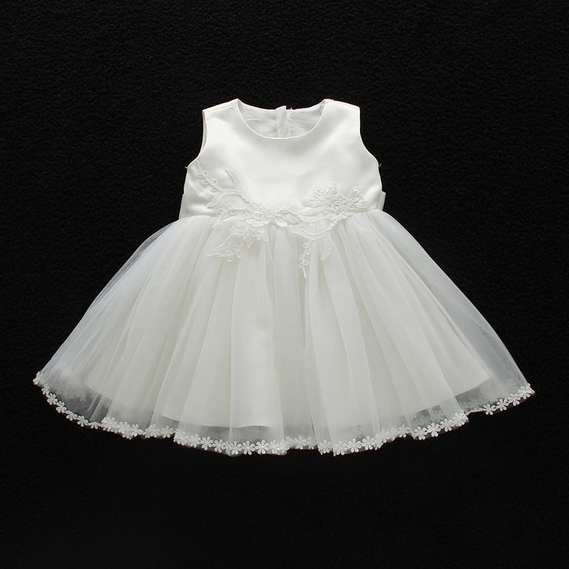 Silver Mermaid Baby Girls Christening Baptism Dress 3Pcs Embroidery Tulle Dresses for Party Birthday Wedding(6M,Ivory White)