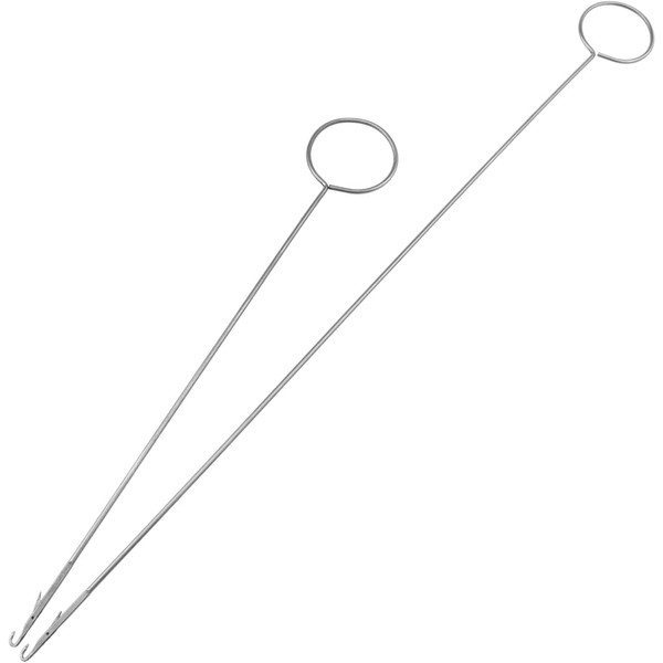 Silver Metal Drawstring Needle Threader Sewing with Needle Inserts DIY Multi-Function Rope Threading Tool Fabric Threader(Long + Short) 1 Set (Silvery, 26.5cm+17.5cm)