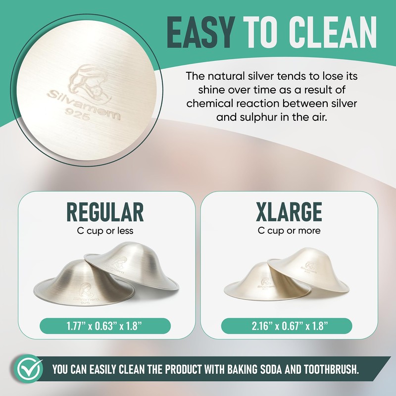 Silvamom Silver Nursing Cups - Reusable 925 Silver Nursing Covers for Sore Nipples, Postpartum Mom Breastfeeding Essentials, Soothes & Protects - Regular