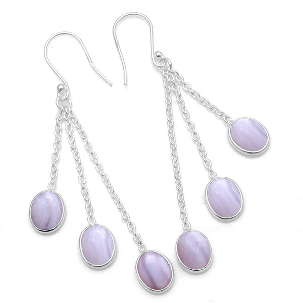 Silver Palace 925 Sterling Silver Natural Gemstone Drop Dangle Earrings for Women, Metal Gemstone, blue lace agate