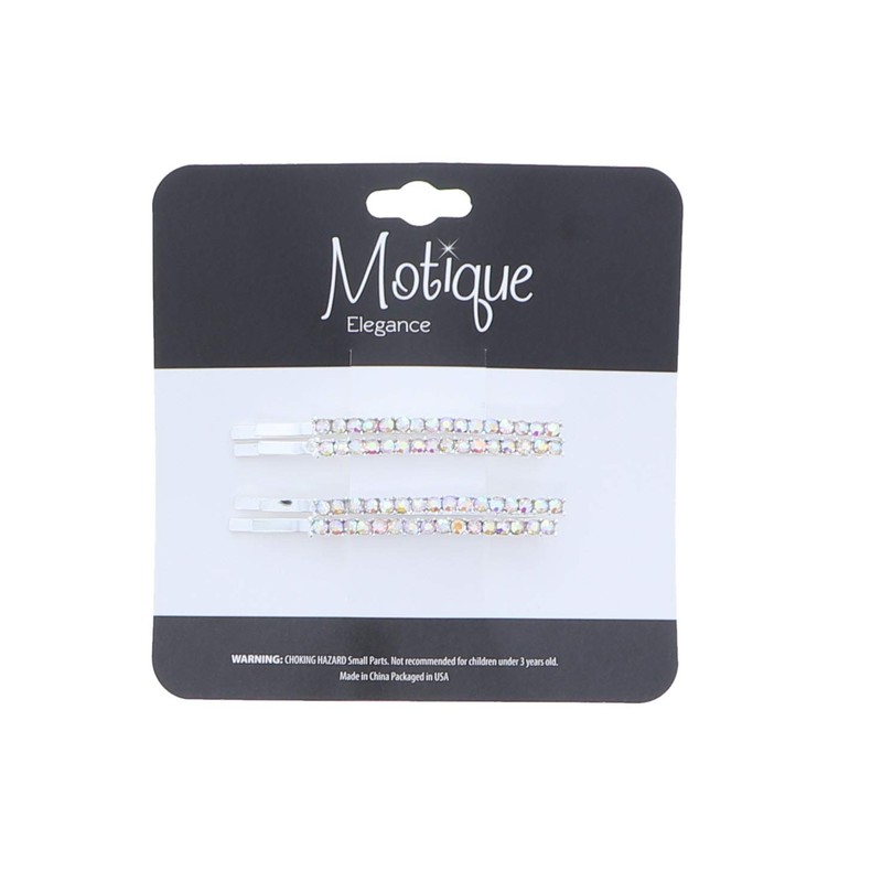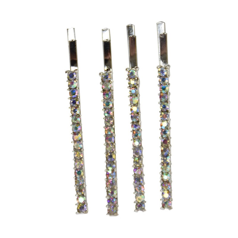Silver Rhinestone Studded Hair Barette Bobby Pin Clip | 4 Count | Multi
