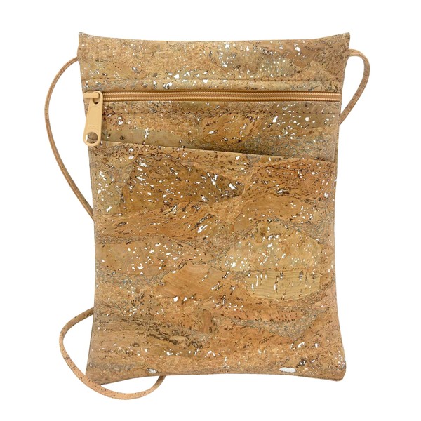 Silver Splash Cork Mini Crossbody Bag with Adjustable Strap