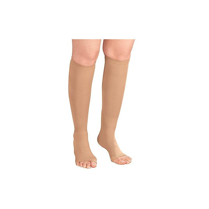 Silver StepsTM Compression Open Toe Knee Highs, 20-30mmHg - Medium, Black