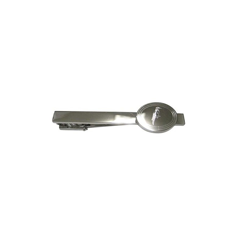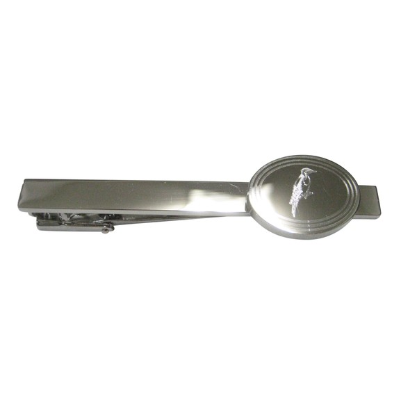 Silver Toned Oval Etched Woodpecker Bird Tie Clip