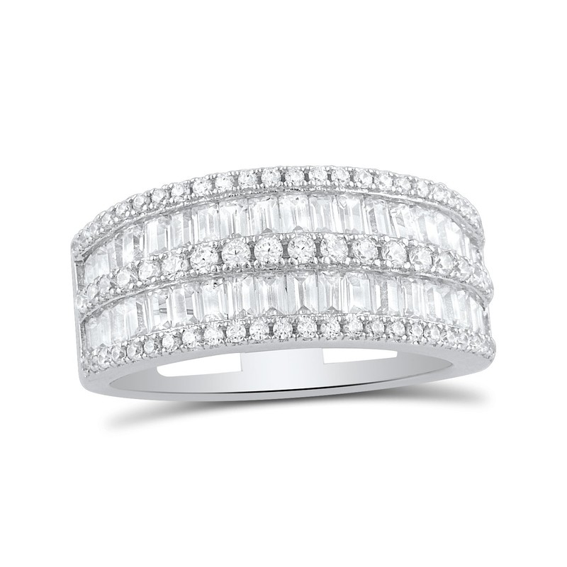 SILVERCLOSEOUT Sterling Silver Simulated Diamond Baguette Cut Statement Ring - Size 4