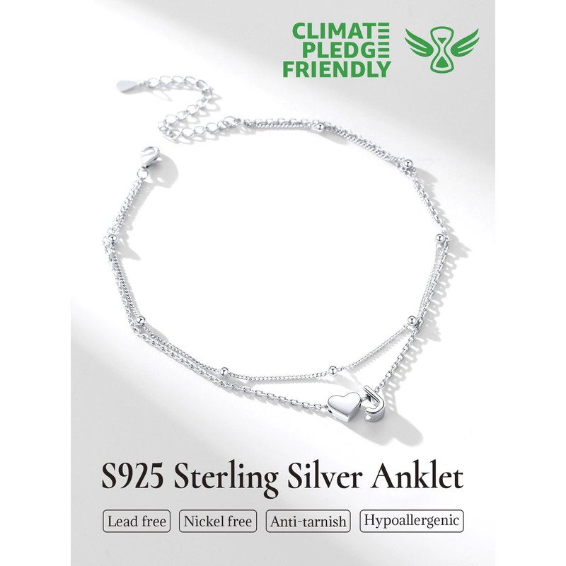 SILVERCUTE Sterling Silver Anklets for Women, Waterproof Initial Heart Ankle ...
