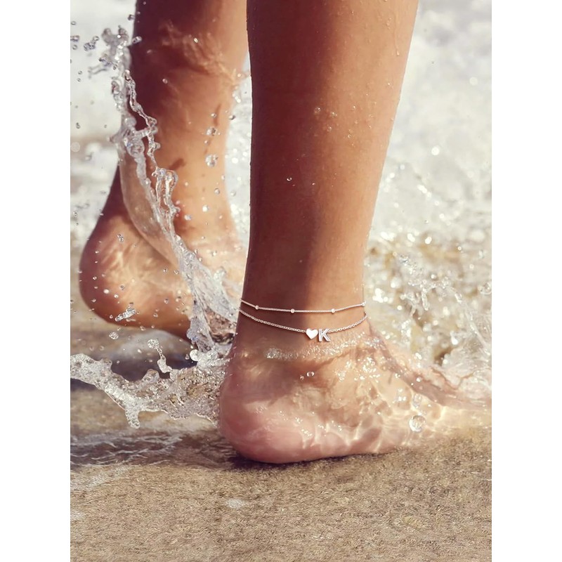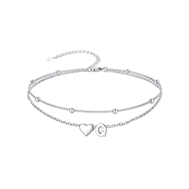 925 Sterling Silver Initial Ankle Bracelet for Women,Layered Chain Initial Heart Anklets .
