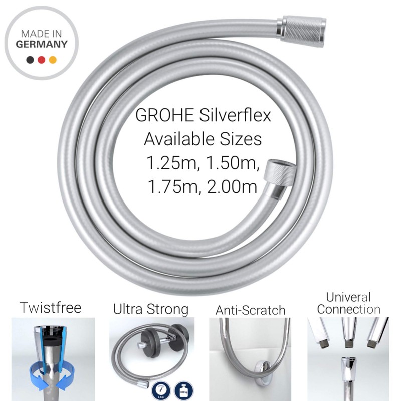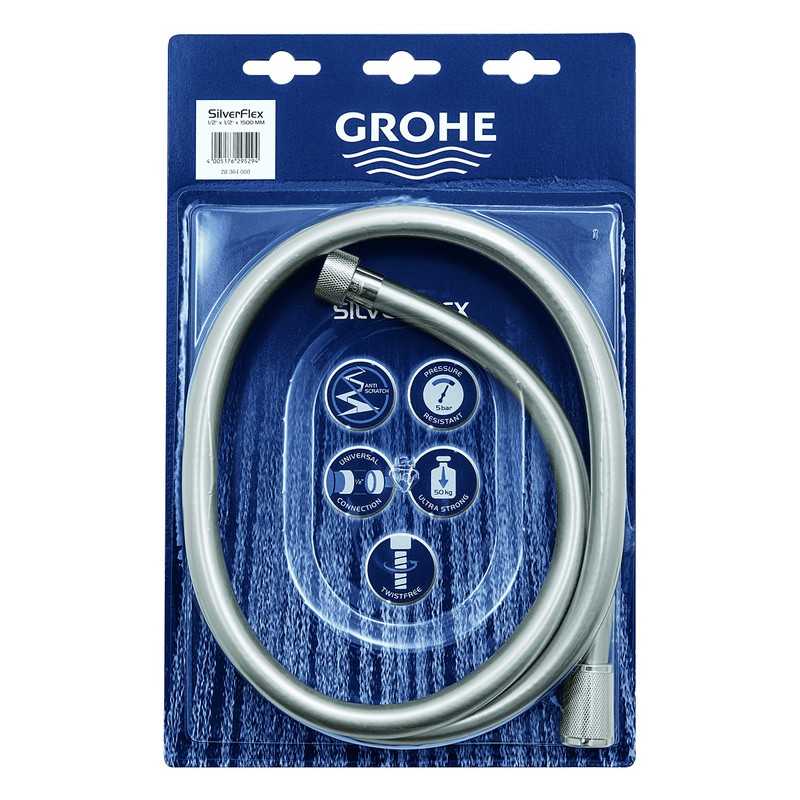This Silverflex hose 59-Inch features a silver finish and is designed for use with GROHE shower heads.