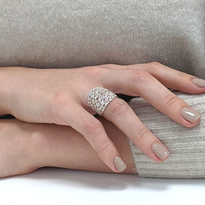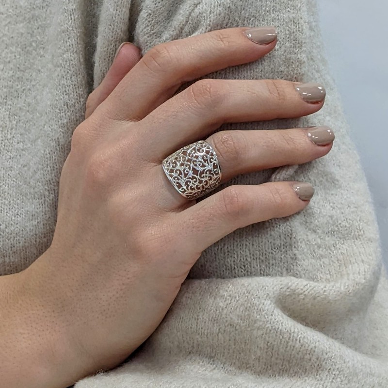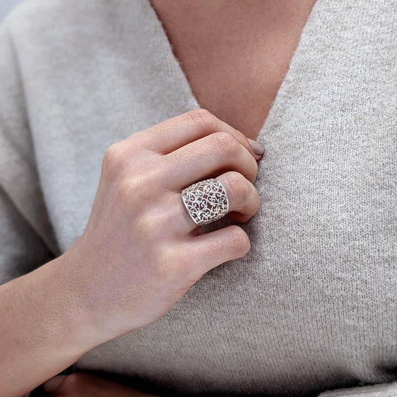 Silverly Women's 925 Sterling Silver 20 mm Wide Open Filigree Swirl Vine Pattern Ring