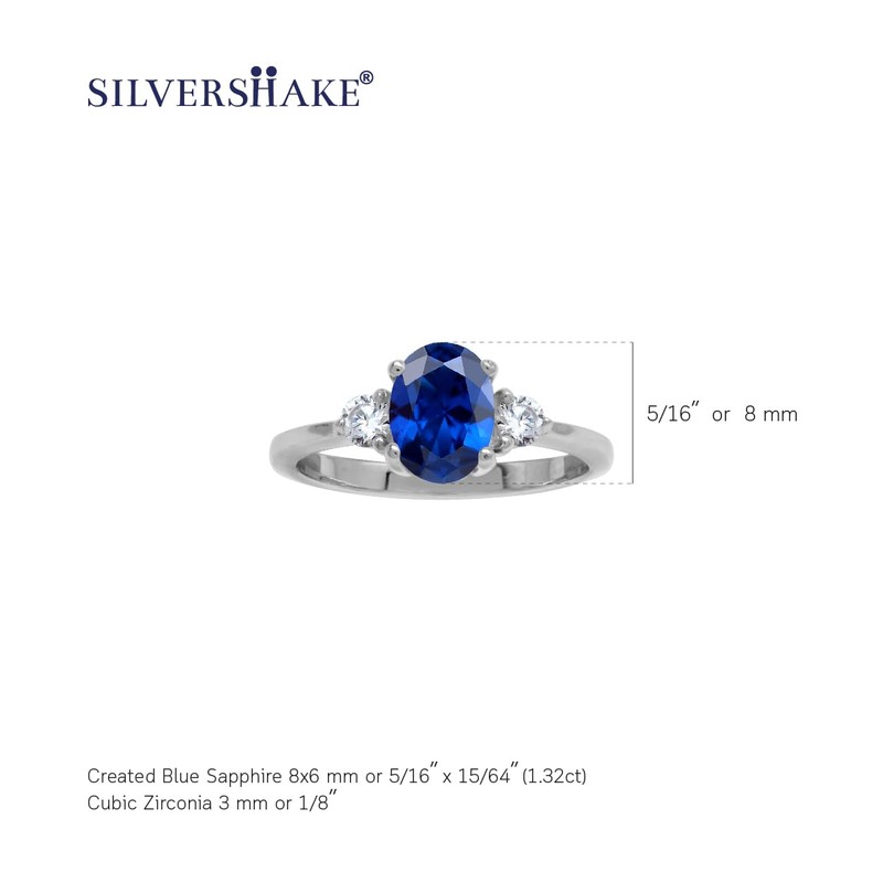 Silvershake 8X6mm Created Oval Shape Blue Sapphire 925 Sterling Silver Engagement Ring September Gemstone Birthstone Size 5.5