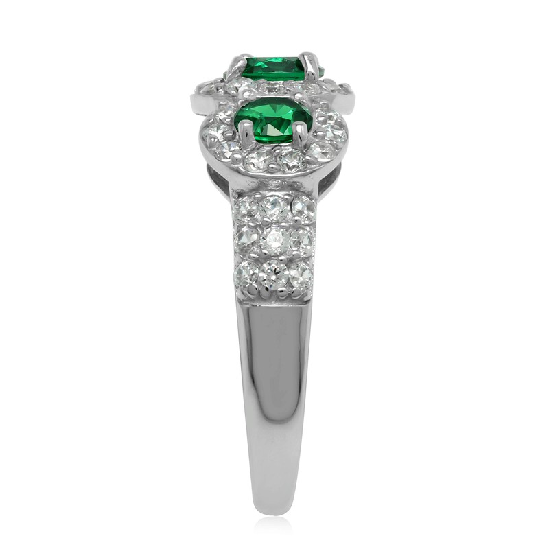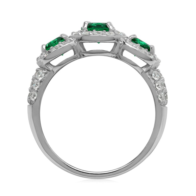 - Silvershake Created 3-Stone Green Nano Emerald White Gold Plated 925 Sterling Silver Ring; is shipped to you in anti-tarnish protection inside reinforced gift boxes with satin-style pouches; guaranteed beyond competitors