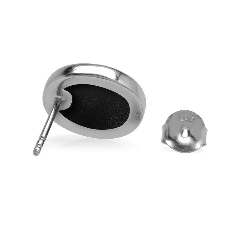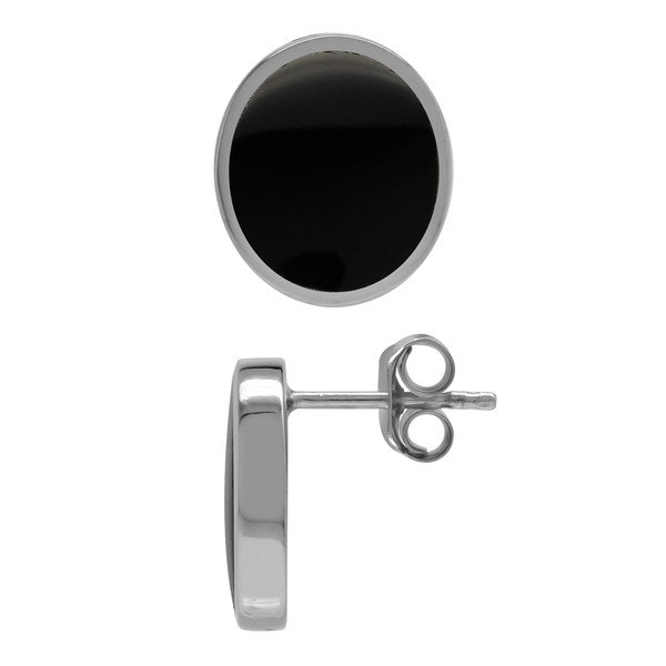 Silvershake Natural Oval 12x10 mm Inlay Black Onyx 925 Sterling Silver Stud Post Earrings
