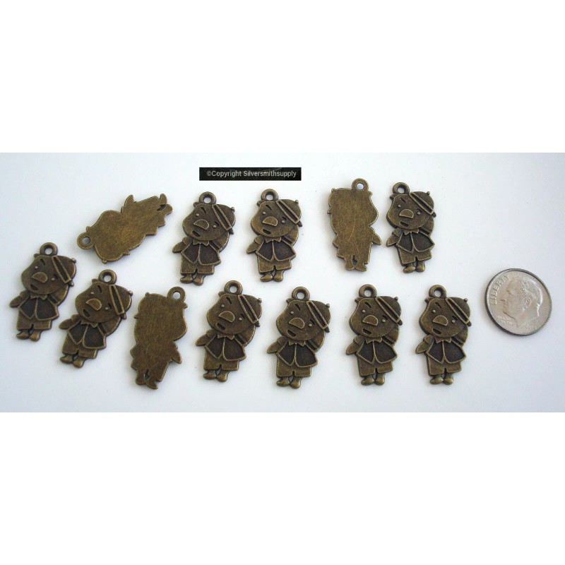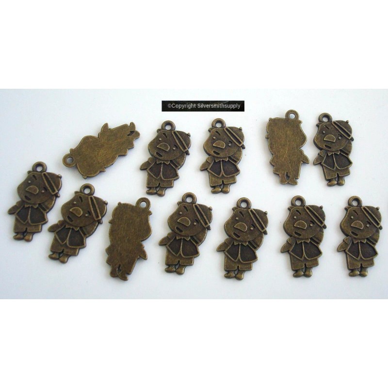 12 Pcs Pigs with attitude - charms with side ways ball cap and bow tie, vest, shorts. These bronze plated zinc charms are wonderful for pendants as bracelets, earrings, or necklaces. Perfect to proclaim your love of little Piggies.