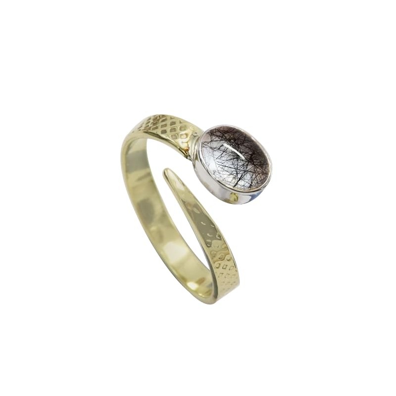 SILVERTROVE Gemstone Sterling Silver and Brass Band Ring for Men and Women in All Sizes Jewellery CRG1093AA, Gemstone Precious metal gemstone, Black Rutile Quartz