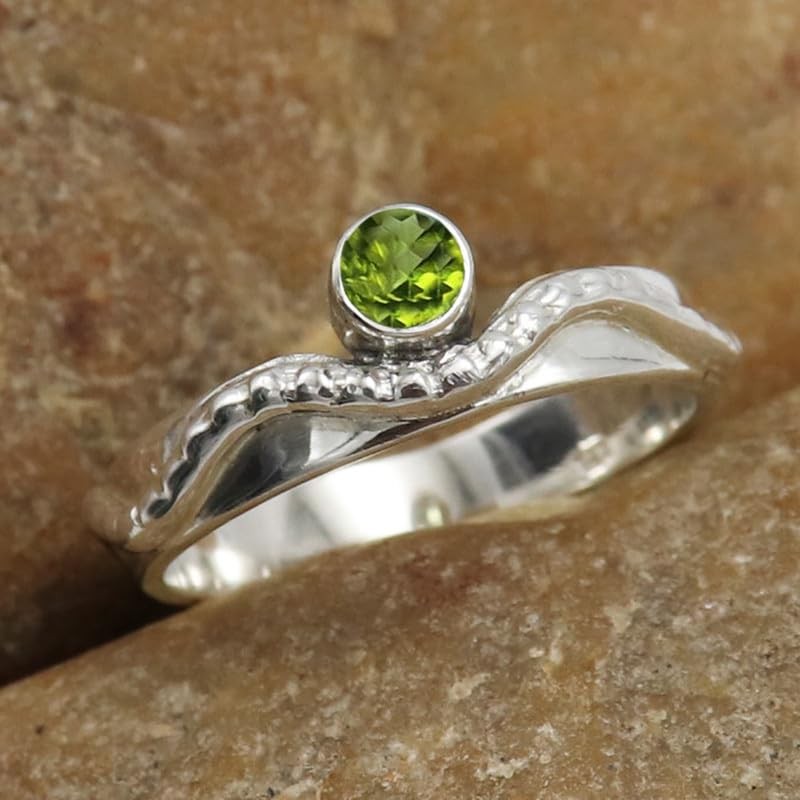 - SPEZIFIKATIONEN: - Ringfarbe: Silber, Gewicht ca. (gms) : 4.5, Ringbandbreite ca. (mm) : 4, Edelstein : Peridot / Steingröße : 4 mm / Steinform : Runden, Andere Metalle : Messing
